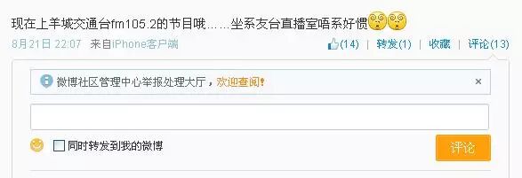 话 说昨天小编回到家躺在床上,百无聊赖地拧着收音机时,居然发现了两把熟悉的声音——那不是猪红和CC么!揉一揉眼睛仔细一看收音机频率:FM105.2, 我再抬头看看大钟:22:10!天啊,这这这发生了什么?时空穿梭了吗?……当我以为发现新大陆,想发微博告知天下的时候,才看到猪红的微博写着↓↓